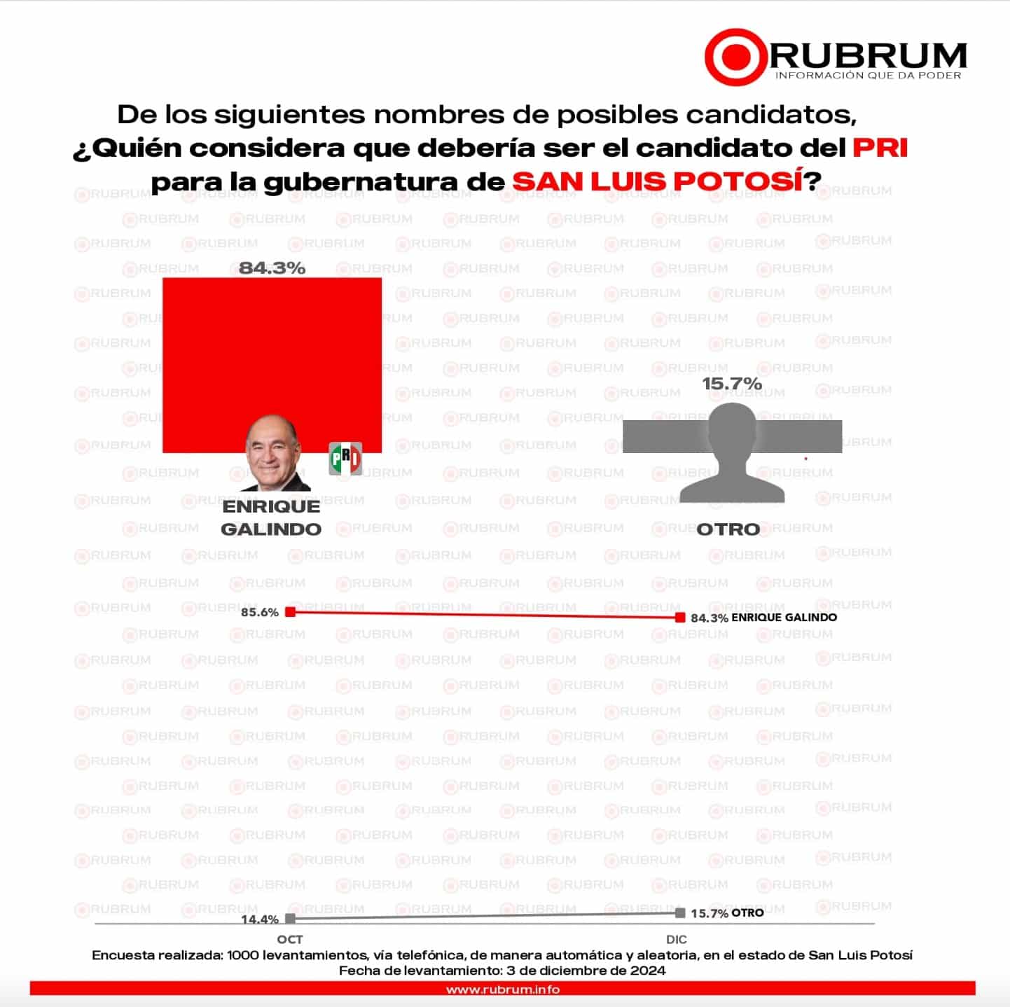 ENRIQUE GALINDO, CON EL 84% DE PREFERENCIA ENTRE SIMPATIZANTES DEL PRI: RUBRUM